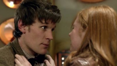 She aims her gun at the Doctor, but Rory pushes him aside and takes the hit. He falls to the ground, apologizes to Amy, tells her she’s beautiful, and dies. Oh, Rory. I loved you so. Earlier in the episode, he told Ambrose that he’d trust the Doctor with his life, and about one minute before this, Amy called him an idiot. I was hoping that Amy would be kinder to him after the events of “Amy’s Choice,” but alas. The light from the crack touches Rory’s body and begins to absorb him, so the Doctor drags Amy into the TARDIS. Amy is desperate to go back for him, but the Doctor begs her to keep Rory in her thoughts, to not let anything distract her. “Tell me about Rory. Fantastic Rory, funny Rory, gorgeous Rory!” he says. Because Rory is part of Amy’s personal timeline, if she fails to hold onto his memory, she’ll forget him once he gets absorbed. Matt Smith and Karen Gillan are wonderful, yet again, in this scene.